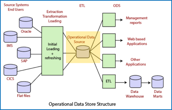El ODS se utiliza para capturar y almacenar los datos operativos en su forma más pura. A menudo, los datos que se encuentran en el ODS provienen de múltiples fuentes, como bases de datos de transacciones, aplicaciones empresariales, sistemas de gestión de recursos humanos y sistemas de seguimiento de clientes.